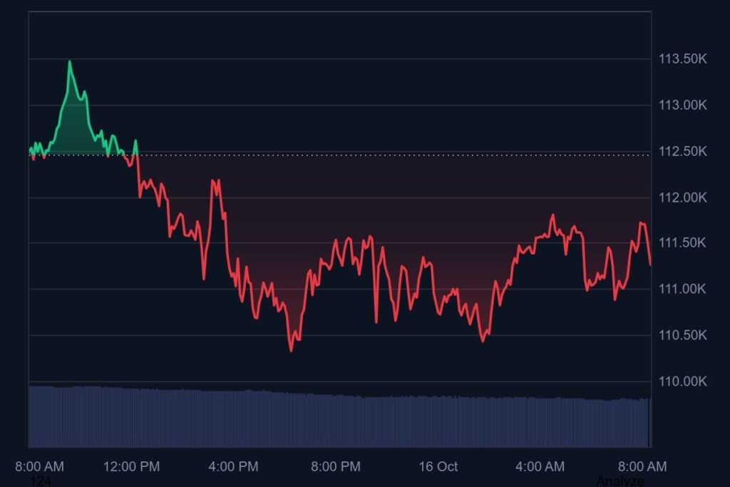 At the time of writing, Bitcoin traded at around $111,377, roughly 5% below the $117,000 level, based on CoinMarketCap data. The cryptocurrency has dropped 4.19% in the past month, suggesting fading momentum.