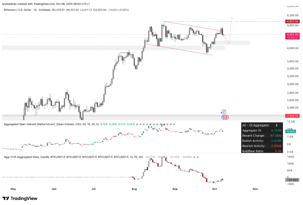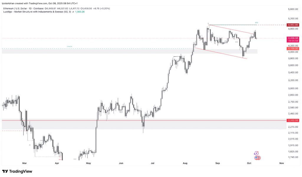 On Oct. 5, Bitcoin surged to a new all-time high, but Ether (ETH) could not break past $4,800. This caused a 3% drop below $4,500 on Tuesday.