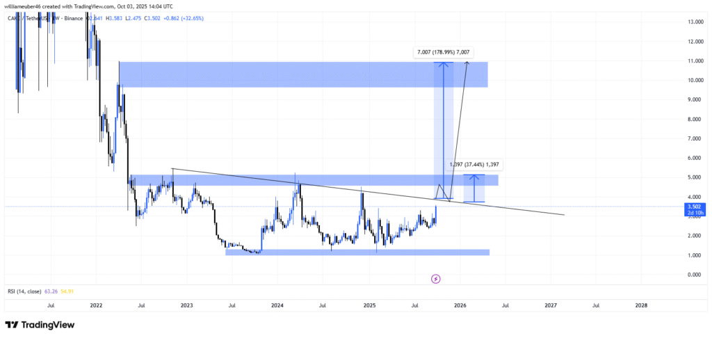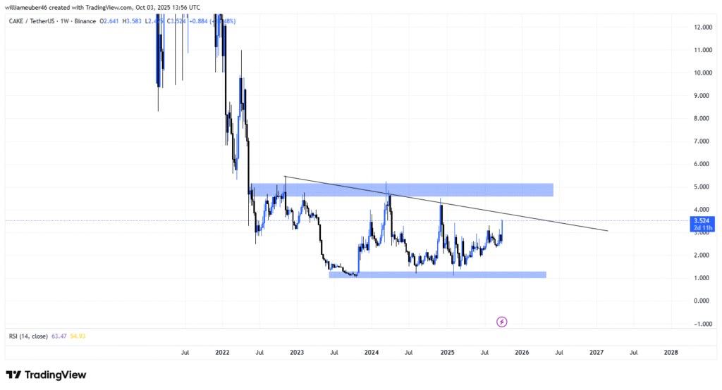 Meanwhile, market watchers have also shared a bullish outlook on the market. In an X post, analyst Karman_1s noted “$Cake shows a long-term Accumulation phase and anticipates multiple “Expansion” phases with significant future growth.”
